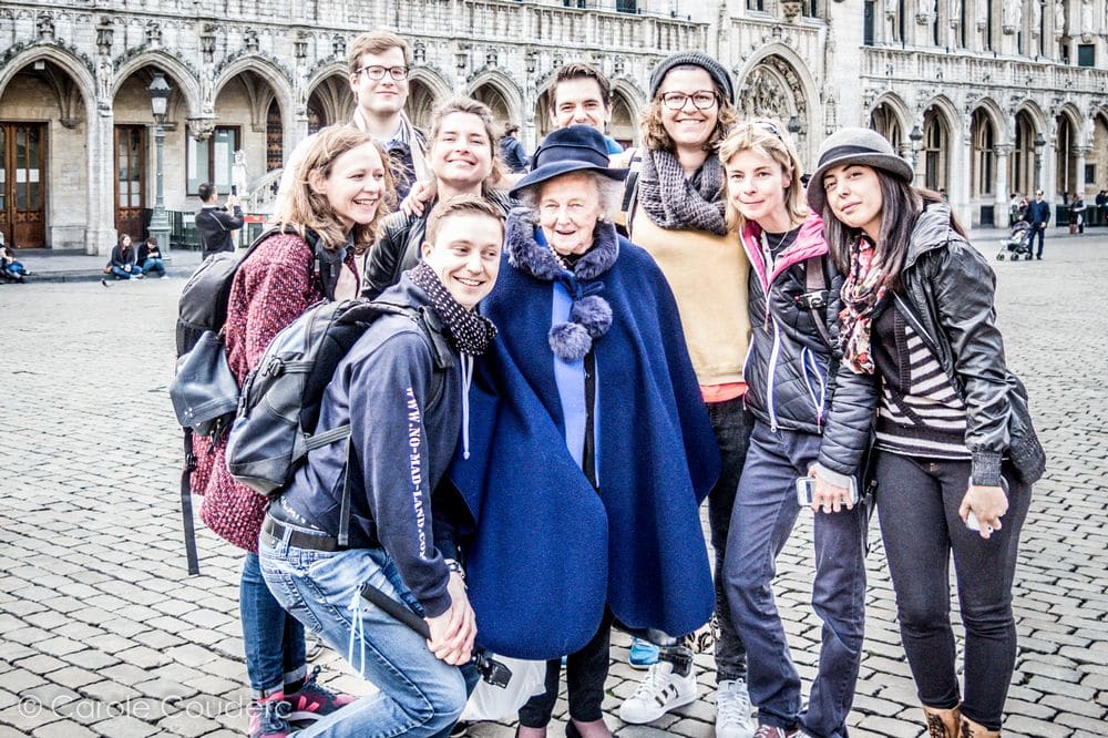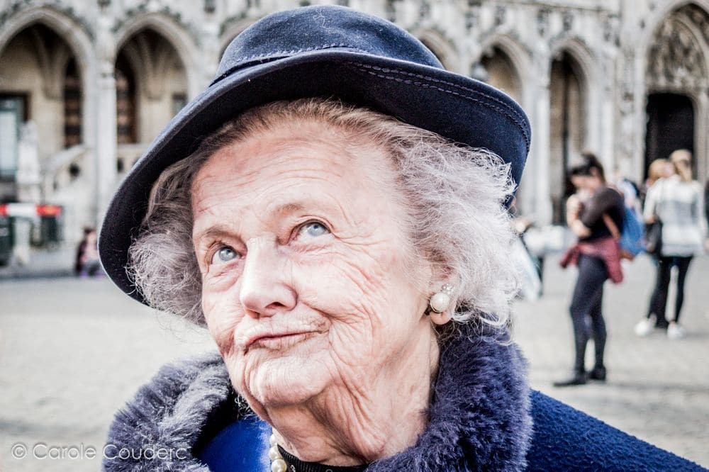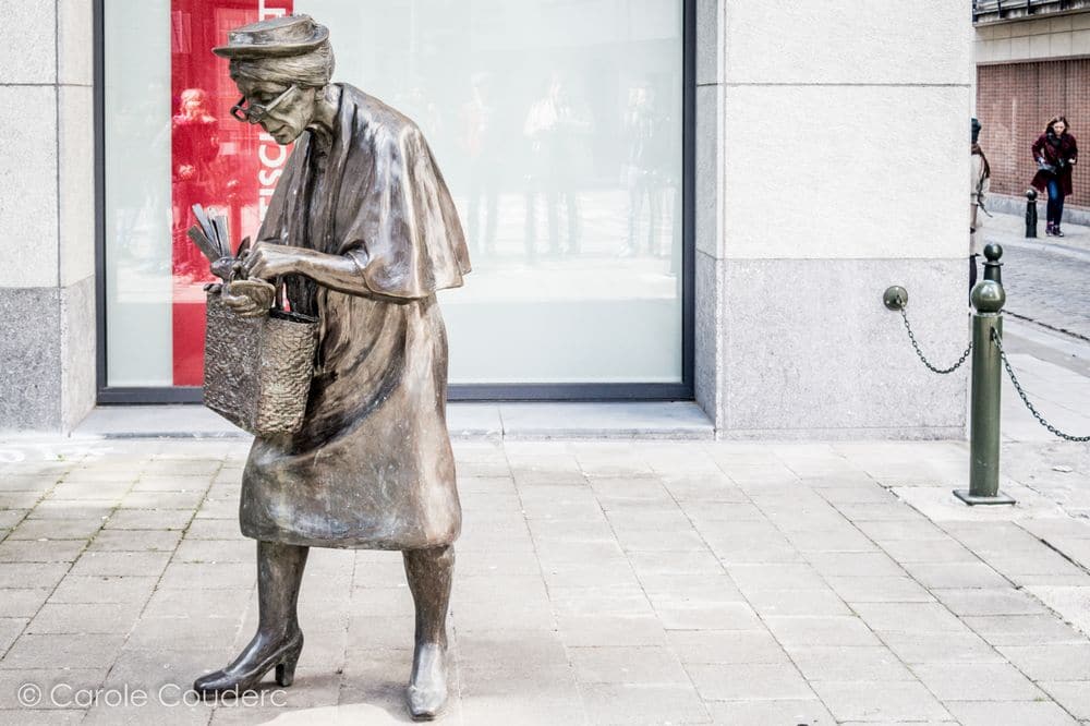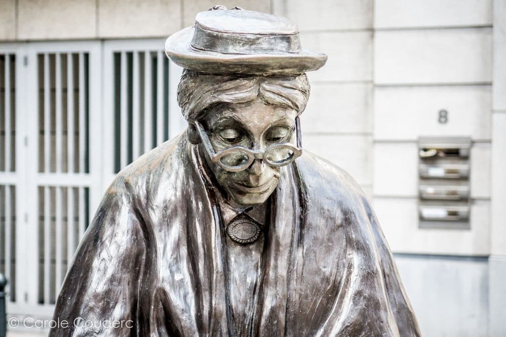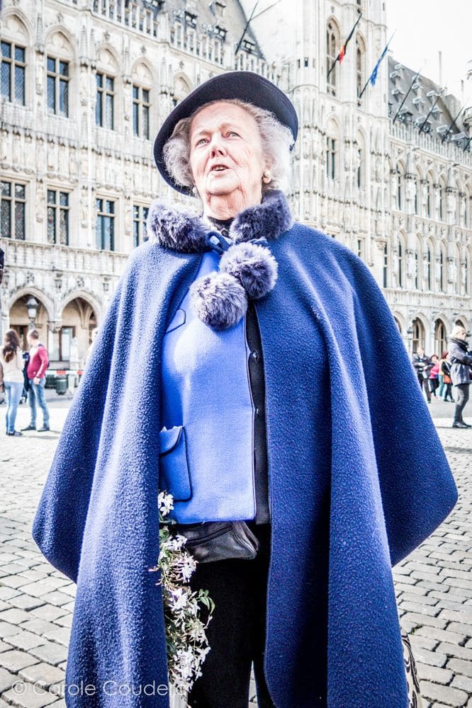 Les rebelles portent très bien le chapeau. Au détour d’une rue la statue de la femme au chapeau, et au détour de la grande place, la femme au chapeau en chair et en os. Je vous présente Lydie, 85 ans, élégante depuis sa jeunesse, une pêche d’enfer, et un bel accent flamant. C’est en quelque sorte LA rencontre du séjour, notre coup de cœur. Notre guide nous a confié que ses femmes au chapeau étaient il y a encore quelques années, les femmes emblématiques de Bruxelles, à tel point qu’on en a fait une statue. Et bien NOUS on a eu la chance d’en rencontrer une, sur la plus belle place de Bruxelles.