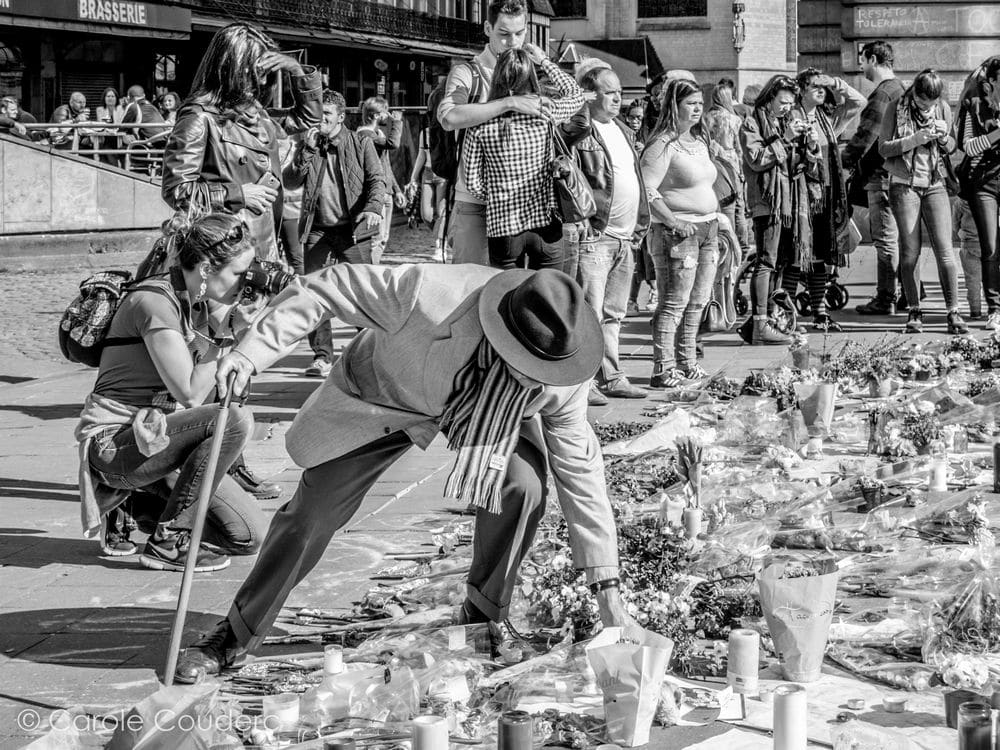 Nous nous sommes recueillis sur la place de la bourse, comme des milliers d’autres personnes, pour rendre hommage aux victimes des attentats. Grand moment d’émotion pour nous devant de parvis de fleurs, de bougies, de mots, de dessins, de drapeaux… Quand tout cela va-t-il s’arrêter? …