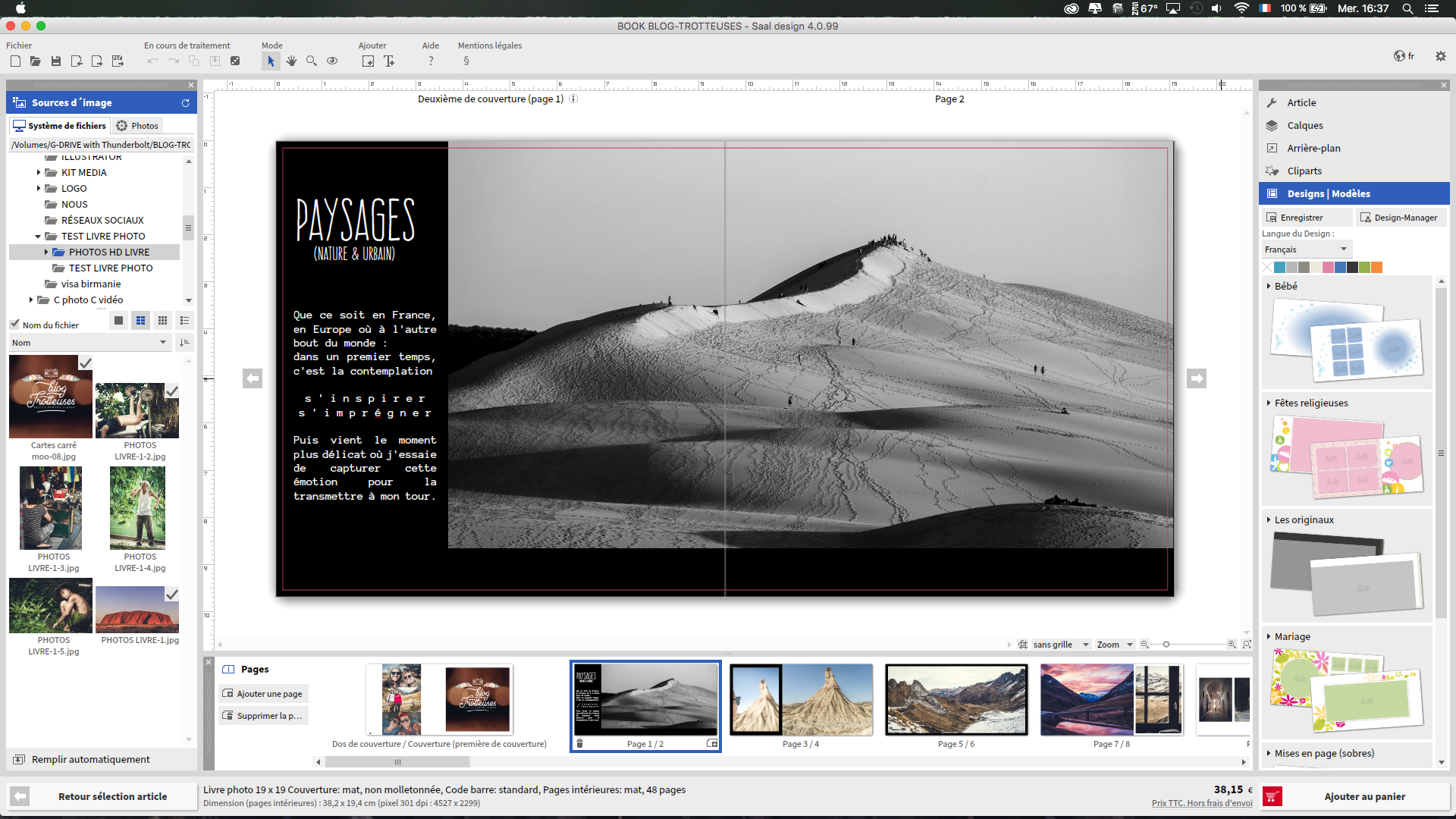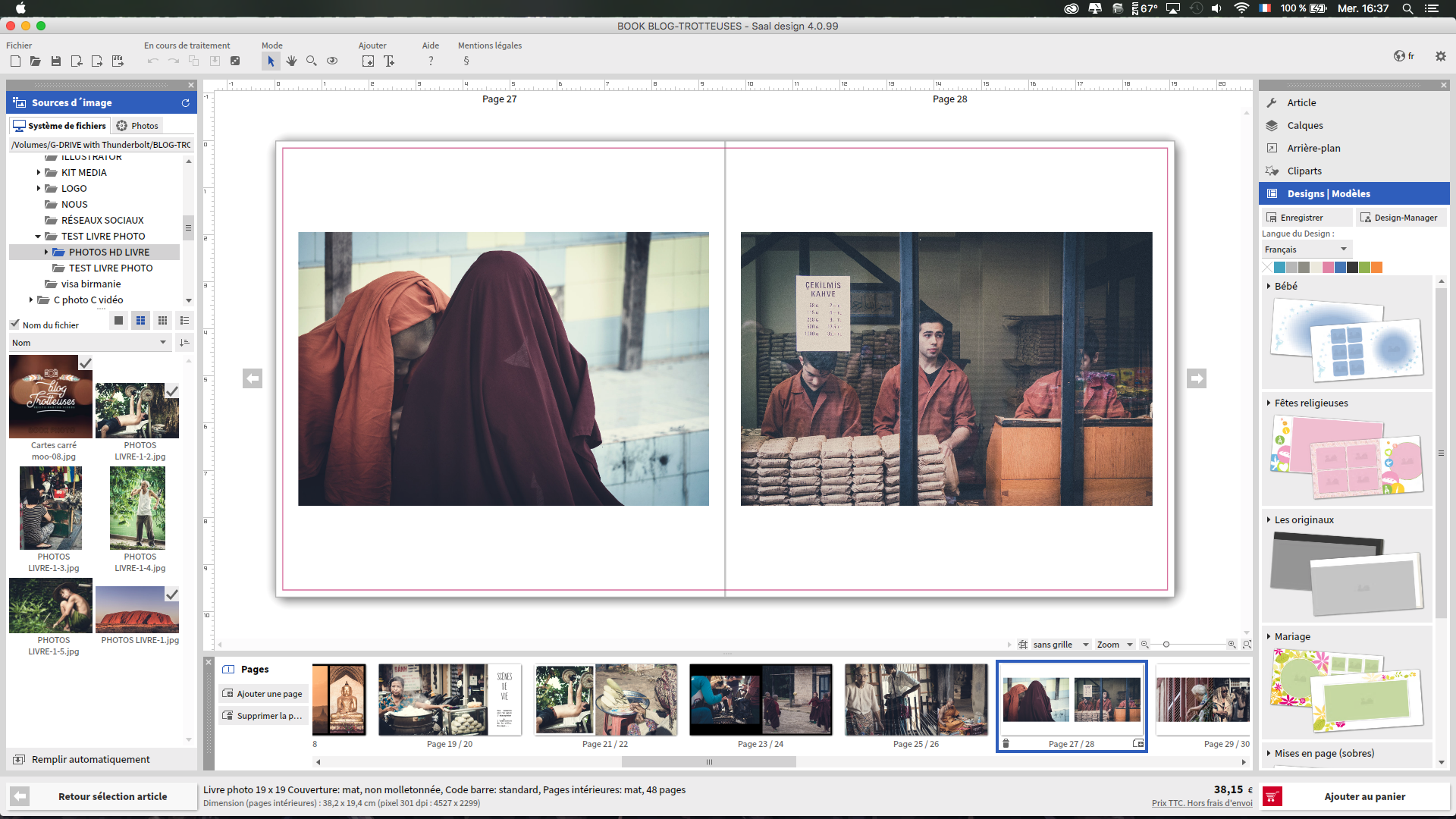 La question se pose toujours quand on rentre de voyage; « que va t’on faire de toutes nos photos ? » « un livre photos pardis ». Bon ça c’est en théorie, après les avoir triées et retouchées, on a déjà oublié. Et pourtant c’est tellement agréable de montrer son travail sur papier. J’ai donc sauté sur l’occasion quand j’ai repéré Saal digital qui proposait un test . C’est l’ouverture à plat du livre qui m’a convaincu, idéal pour les panoramas.
